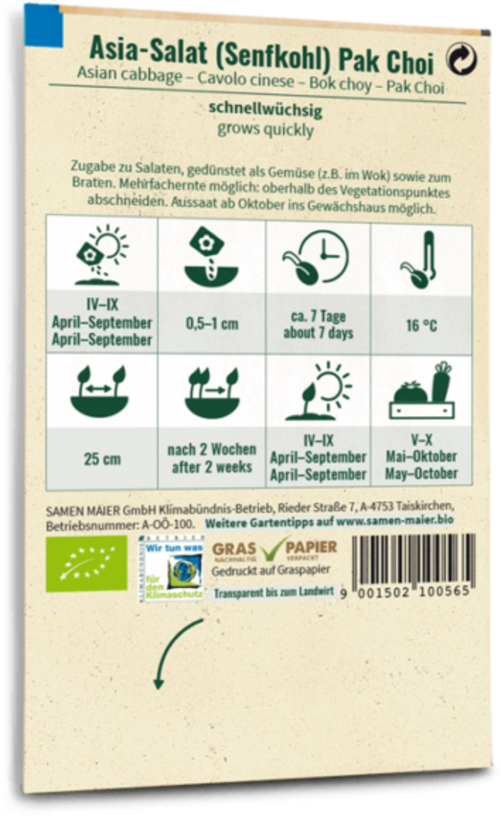 Questa varietà di cavolo asiatica è semplice da coltivare. Assicurati di fertilizzare e annaffiare il terreno regolarmente. Nei giorni asciutti, meglio annaffiare bene il cavolo per mantenerlo umido. Tagliando sopra al punto di vegetazione, sono possibili più raccolti.