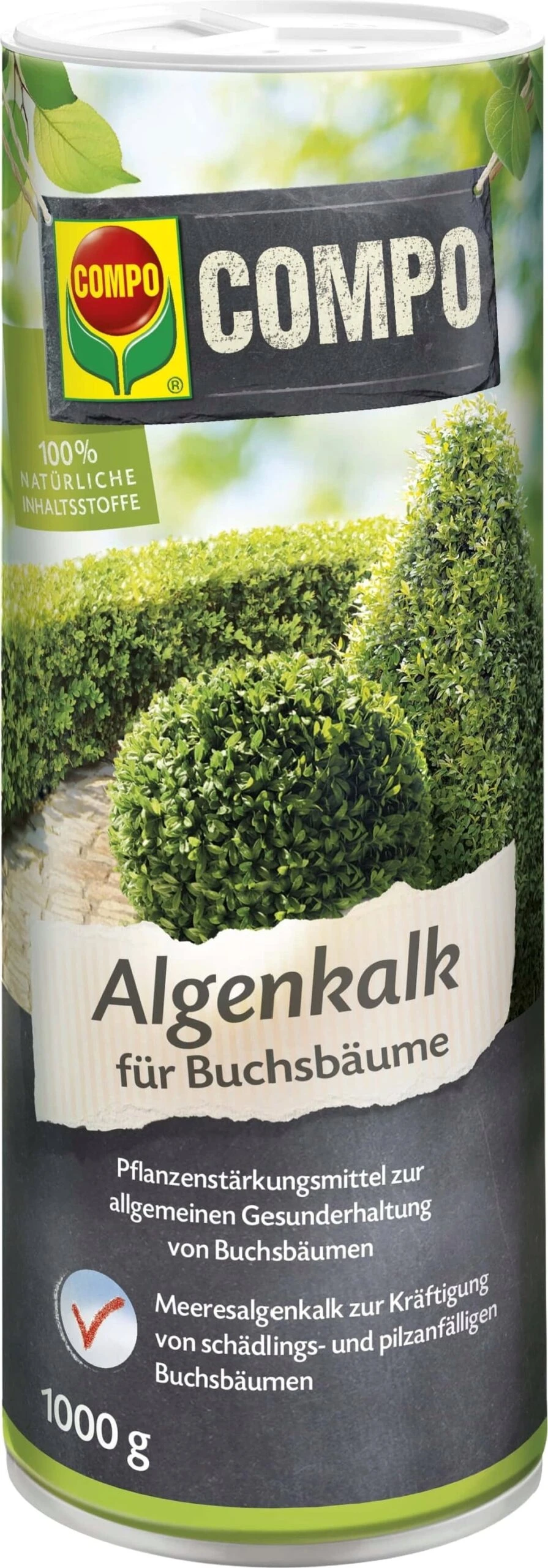Questo prodotto per piante è perfetto per mantenere sani i bossi, perché le alghe marine calcaree rafforzano i bossi sensibili a parassiti e funghi, sostenendo la vitalità delle piante.
