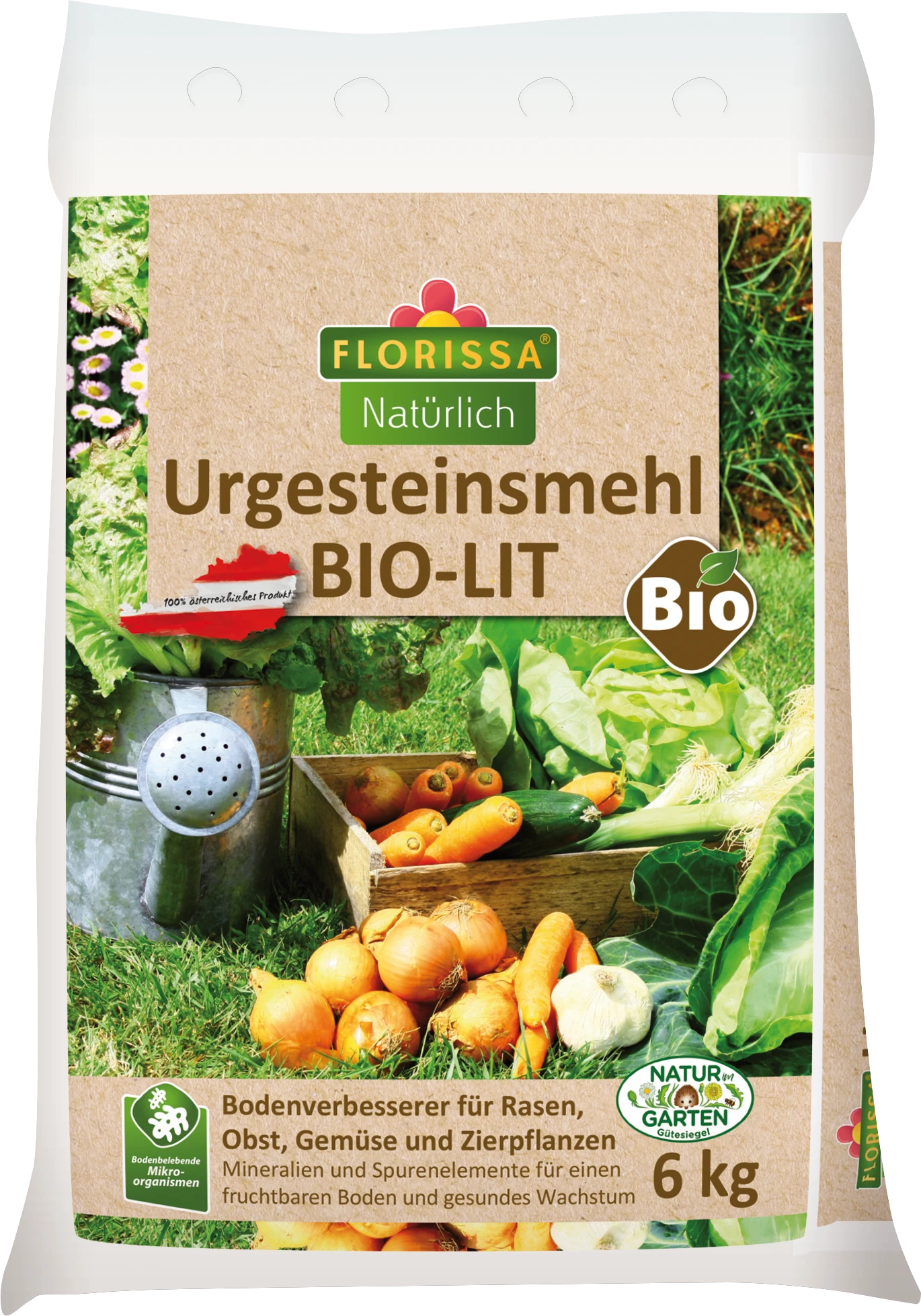 La roccia primitiva BIO-LIT di Florissa è un ammendante naturale per tutte le piante da giardino, balcone e in vaso. Può essere utilizzata anche per il prato. La farina di roccia primitiva neutralizza i terreni acidi e favorisce il riscaldamento e la ventilazione.