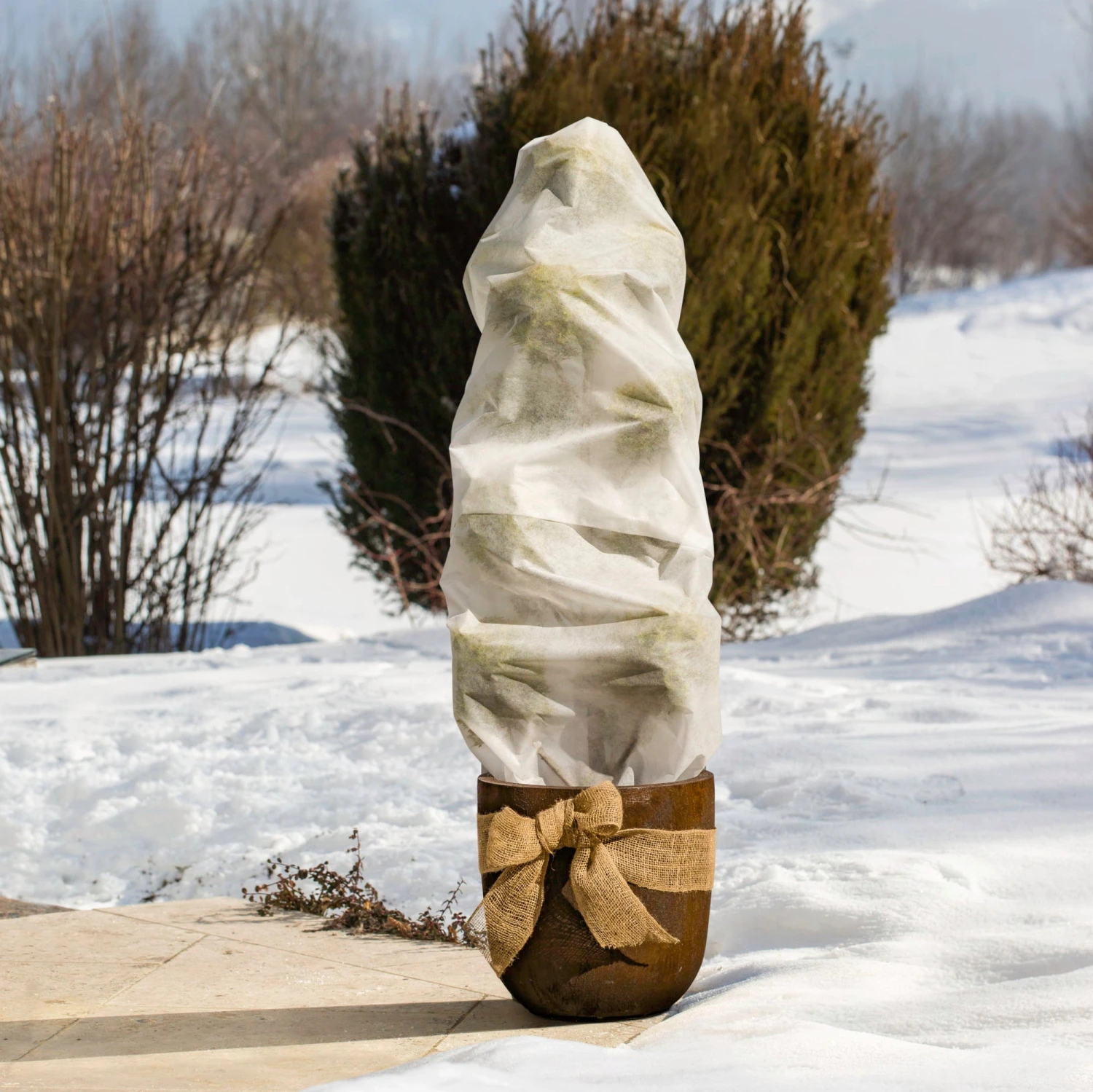 Questa copertura in TNT è un modo particolarmente sostenibile e rispettoso dell’ambiente per proteggere le tue piante dal freddo, dal vento e dall’essiccamento del sole in inverno. Essendo particolarmente leggera e flessibile, la copertura si adatta perfettamente alle piante.